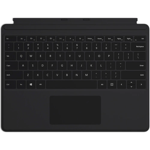 Черная клавиатура Microsoft Surface Pro X , разработанная специально для Surface Pro X, оснащена механическим набором клавиш, светодиодной подсветкой и большой стеклянной сенсорной панелью для точной навигации и управления.