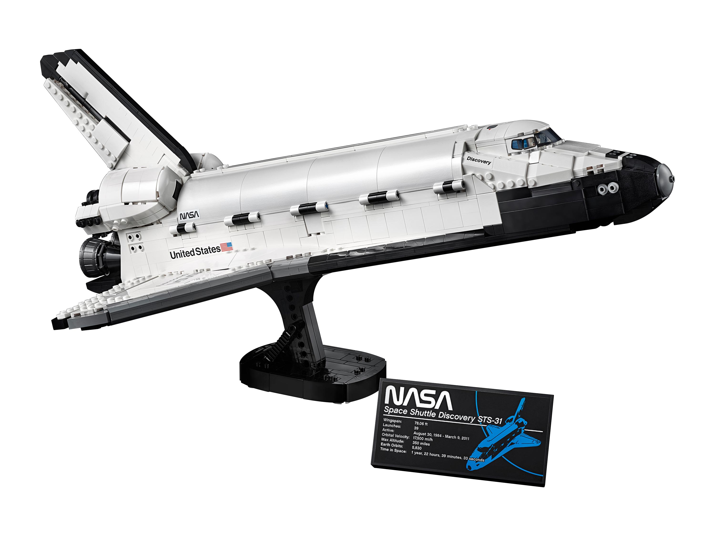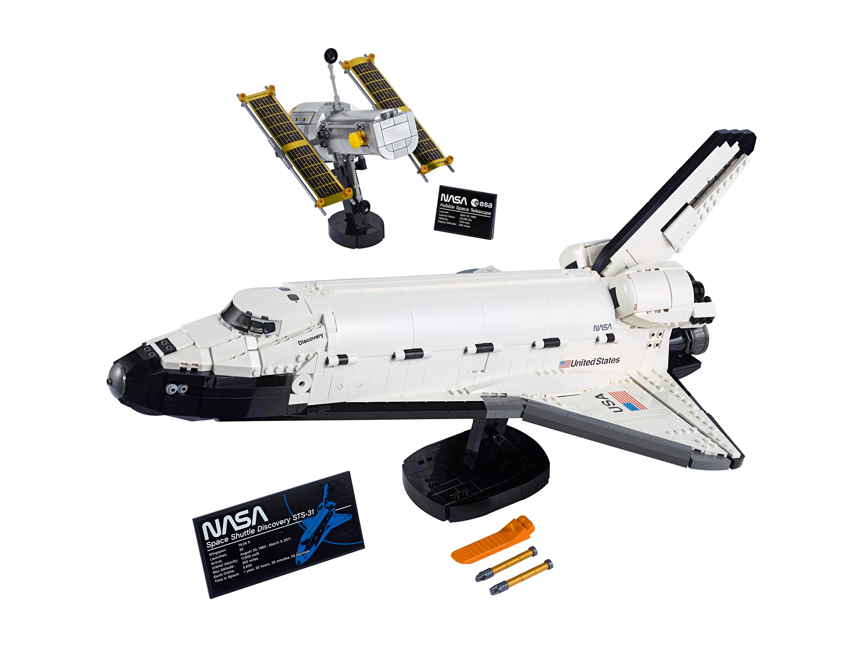 Набор состоит из 2354 деталей и предназначен для взрослых сборщиков 18+. Модель повторяет внешний вид шаттла «Дискавери», отправившегося в миссию STS-31 в 1990 году с телескопом Хаббл на борту. Конструкция была разработана в сотрудничестве с NASA, что придаёт ей достоверности и инженерной глубины.