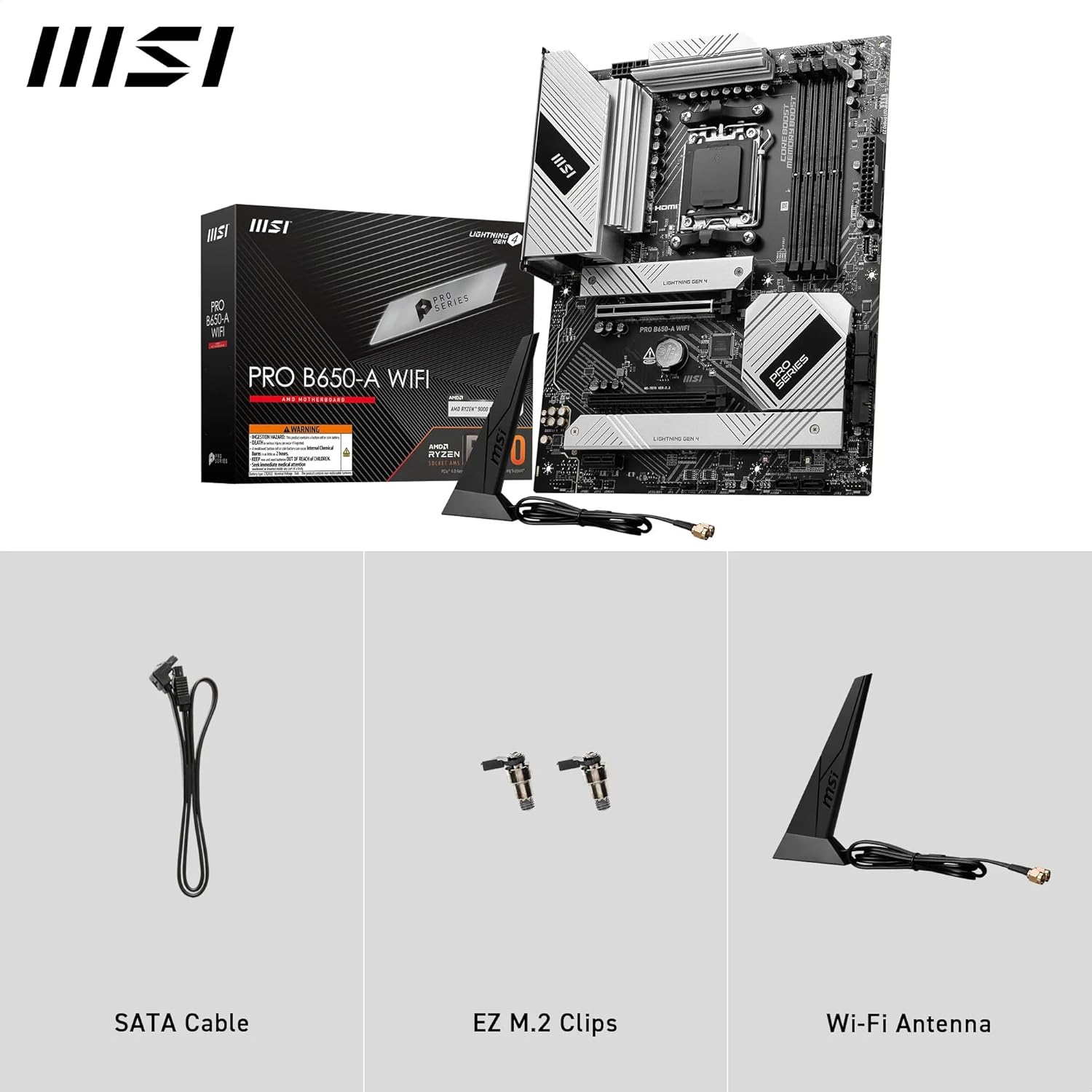 MSI PRO B650-A WiFi — высокопроизводительная материнская плата ATX-формата из серии PRO, созданная для современных систем на базе платформы AMD AM5 и ориентированная как на рабочих пользователей, так и на геймеров и создателей контента.
