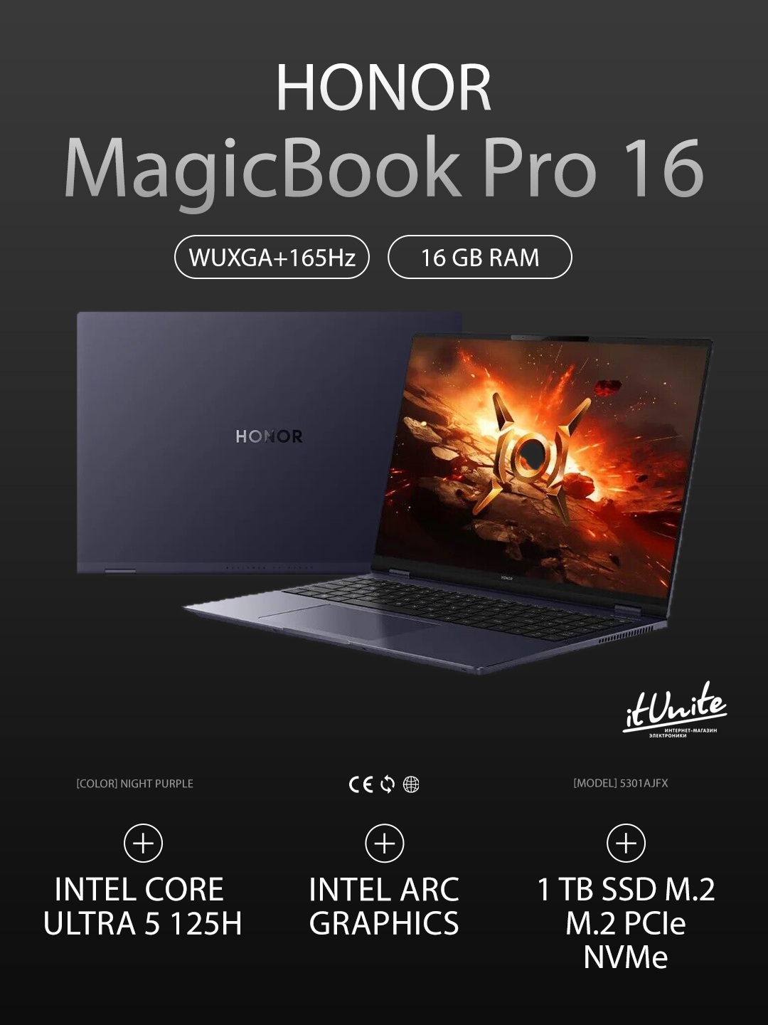 HONOR MagicBook Pro 16 — идеальный выбор для творческих профессионалов и продвинутых пользователей, которым важны производительность, качественное изображение и продуманный дизайн. Его оснащение Intel Arc делает его особенно привлекательным для работы с графикой, моделирования и контента.